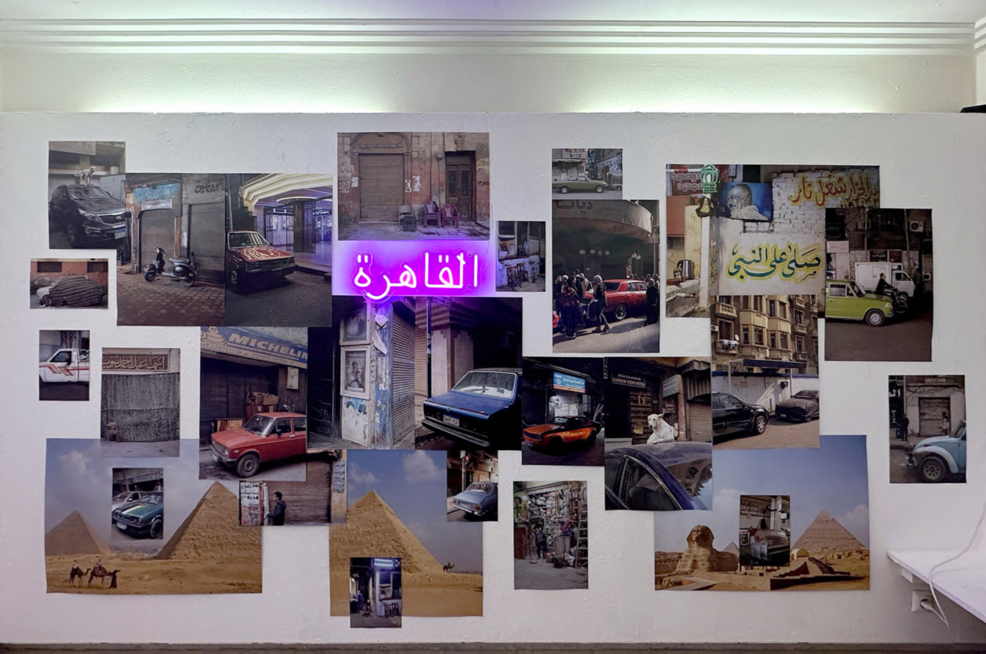 CAiRo invites the audience to experience the stratification of history, culture, and innovation, wherevintage cars, ancient wonders, and modern rhythms interweave, giving shape to the city's rich and diverse heritage. I added dynamic elements to this photo exhibition as a reminiscence of the lively displays adorning the streets of Cairo: flashes of color and light pay tribute to the electric energy that pulses through the body of the city, while a melodic fusion of traditional music and contemporary beats captures the rhythm of the city's vibrant past and present.